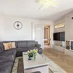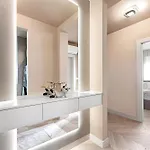 The 114 m^2 Luxury Apartment Tisa has a balcony and a sitting area, equipped with ironing facilities and air conditioning, as well as entertainment options like high-speed internet and a flat-screen TV with satellite channels. A walk-in shower and a separate toilet are provided upon request. Additionally, you'll find a hairdryer, guest toiletries, and bath sheets.